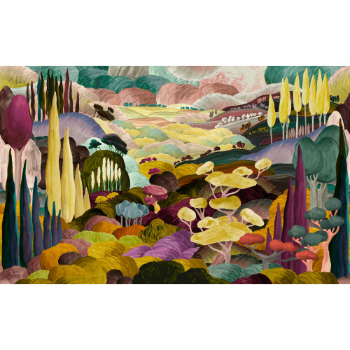 Transformeer uw muur tot een adembenemend uitzicht met het panorama behang Les Songes Toscans van Arte Décors & Panoramiques. Dit kunstzinnige fotobehang voert u direct mee naar de zonnige, golvende heuvels van Italië, vol met cipressen, olijfgaarden en karakteristieke boerderijen. Een tijdloos tafereel dat rust, warmte en romantische sfeer brengt in uw interieur.