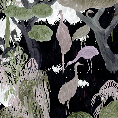 Dit behang dompelt je onder in een feeëriek verhaal van dichtbegroeide bossen en verborgen dieren. Het ontwerp, met de kenmerkende syringa (sering), creëert een diepe, intrigerende sfeer die zowel rustgevend als spannend is. Het is meer dan behang; het is een volledige muurschildering die elke ruimte een unieke identiteit geeft.