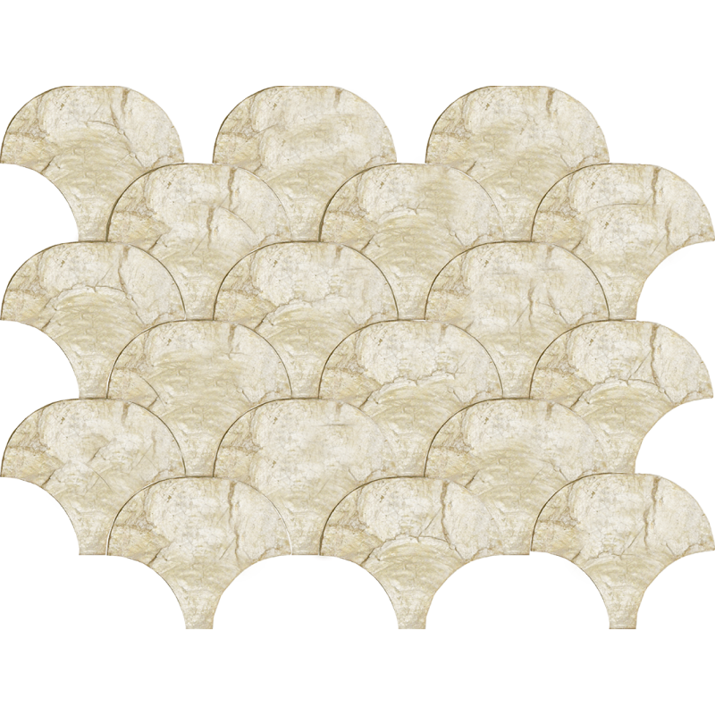 Dit behang valt in de categorie 'Tegel behang' en is een waar kunstwerk voor uw muur. De capiz-schelpen worden met de hand gekleurd, versneden en ingelegd in een geometrisch Camber patroon. Het resultaat is een verfijnde en luxueuze uitstraling die licht op een unieke manier reflecteert.