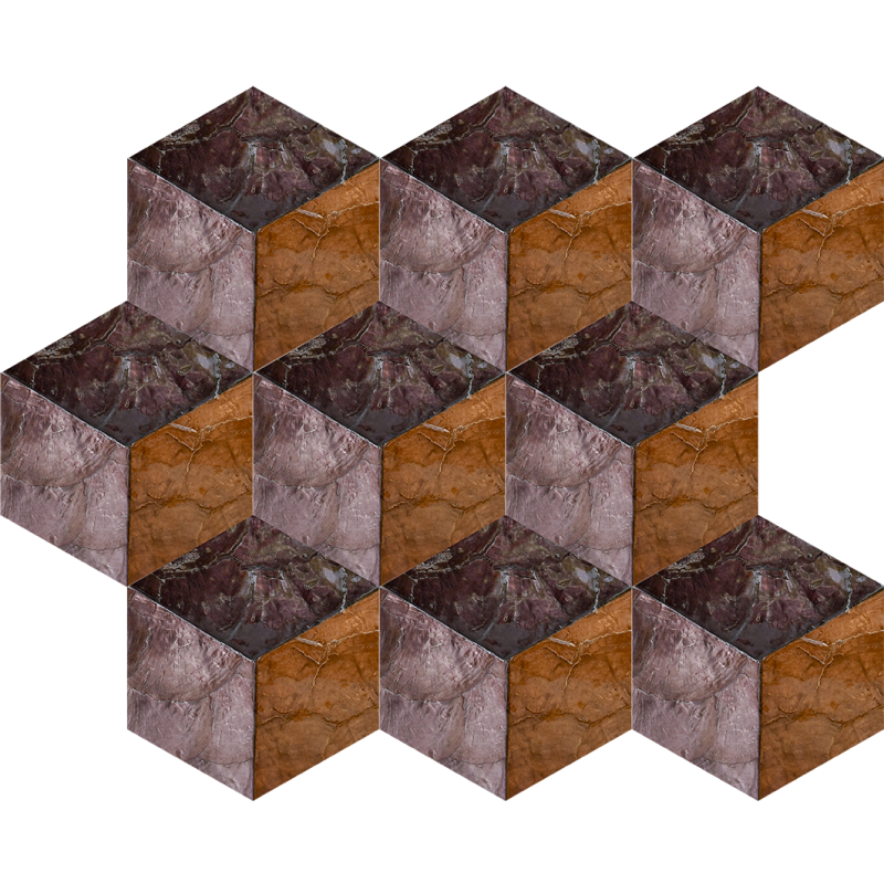 Elke tegel is een kunstwerk op zich. De oesterachtige capiz-schelpen worden met de hand gekleurd, zorgvuldig versneden en in een modern geometrisch patroon ingelegd. Omdat capiz een echt natuurproduct is, verschilt elke schelp licht in kleur en structuur. Dit creëert een levendig, diepgaand effect dat onmogelijk door machines na te maken is. De warme, aardse Burnt Sienna tint voegt een rijke en tijdloze sfeer toe aan elke ruimte.