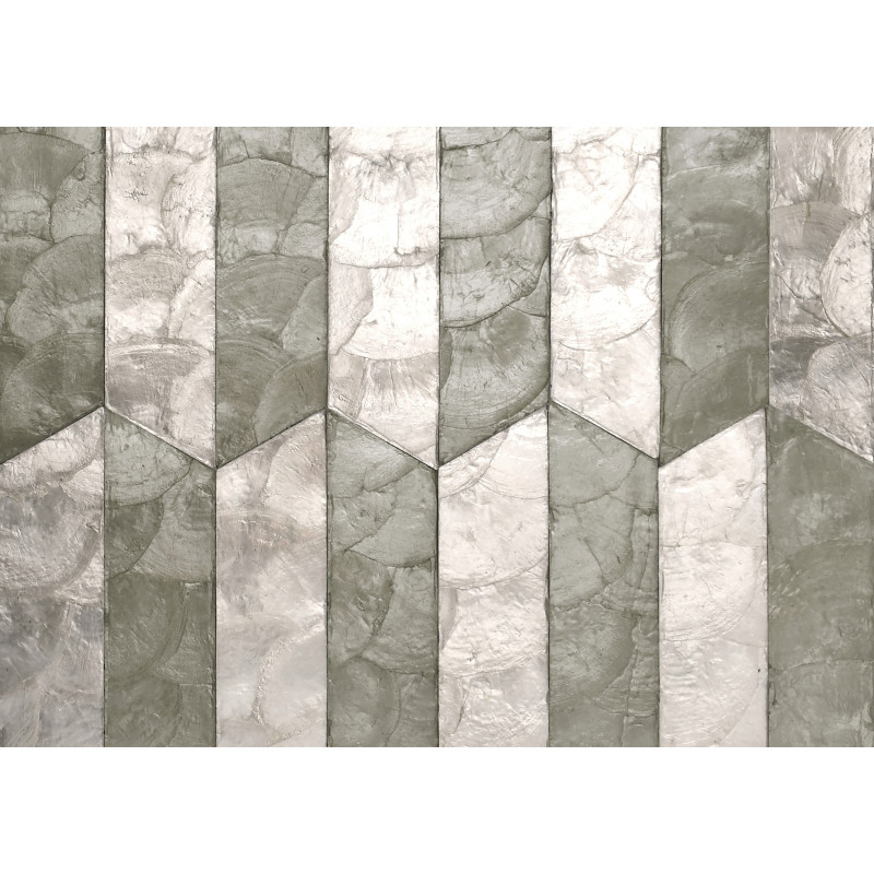 Breng de serene schoonheid van de Filipijnse zee naar uw interieur met het exclusieve Samal Prisma behang van Arte. Dit bijzondere behang is geïnspireerd op het eiland Samal, waar de kostbare capiz-schelpen worden gewonnen. Elke schelp wordt met de hand gekleurd, versneden en ingelegd in een verfijnd geometrisch patroon, wat resulteert in een waar kunstwerk voor uw muur.