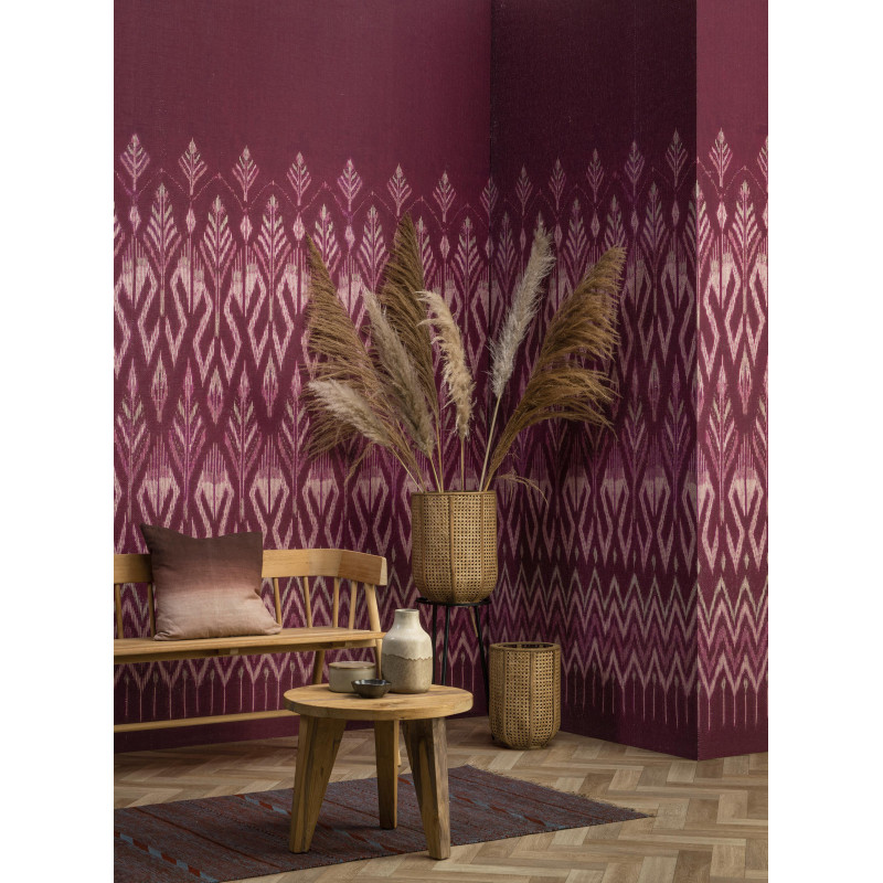 Het Tribu-behang is rijkelijk en uitbundig, maar nooit overdadig. Het creëert een warme, uitnodigende sfeer met diepte en textuur. Perfect voor wie op zoek is naar een statement voor de woonkamer, slaapkamer of een unieke accentmuur.