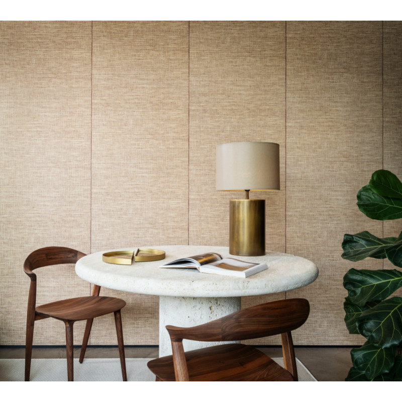 Dit behang is geïnspireerd op de eeuwenoude traditie van het gebruik van grassen en natuurlijke vezels in de woning. Het ontwerp bootst de textuur en diepte van geweven rafia na, wat zorgt voor een warme en tactiele uitstraling. De diepe wijnrode kleur voegt een vleugje verfijning en dramatiek toe.
