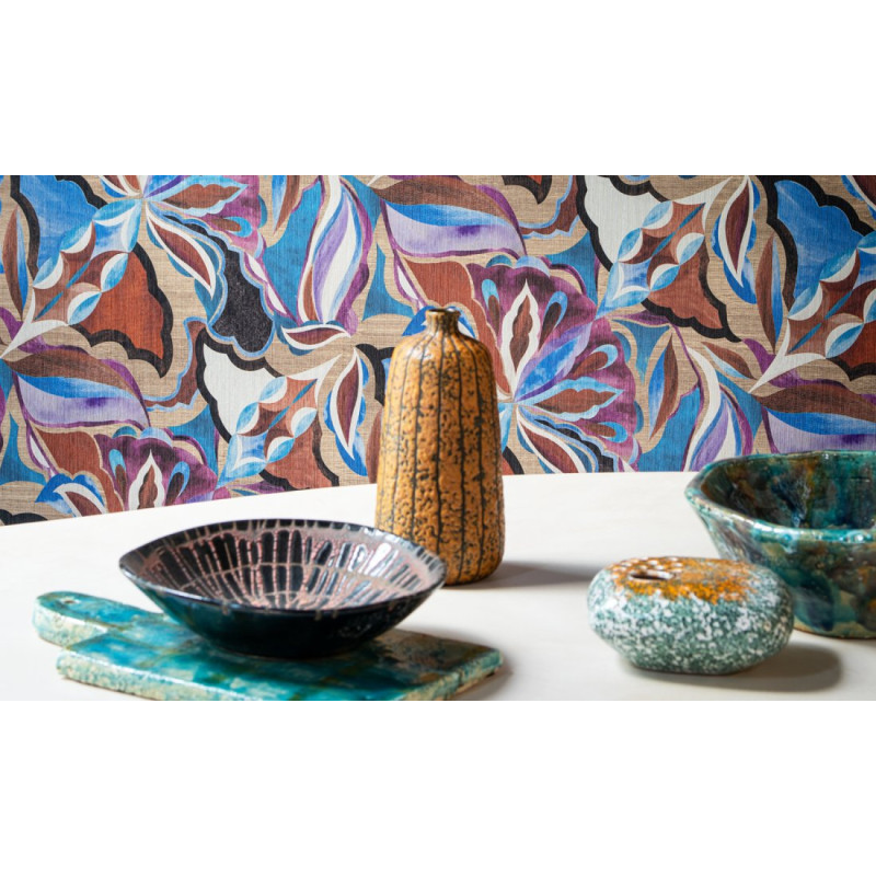 Net zoals de klassieke Tangram-puzzel bestaat uit zeven vormen die talloze figuren kunnen creëren, is dit dessin een ingenieuze compositie van patronen. Het ontwerp is een harmonieuze maar complexe puzzel die uw blik blijft vasthouden en uw ruimte een unieke identiteit geeft.