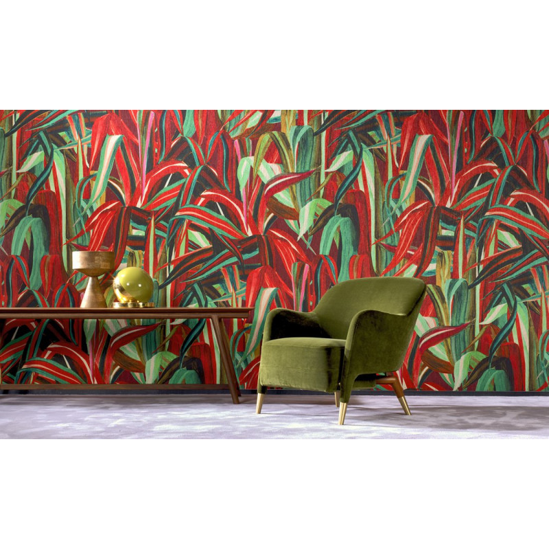 Dit behang is meer dan alleen decoratie; het is een statement. Het brengt de rust en kracht van de natuur naar binnen en fungeert als een prachtig middelpunt in je interieur. De rijke, groene tinten en organische vormen zorgen voor een kalmerende en toch energieke sfeer, ideaal voor het creëeren van een persoonlijke retreat.