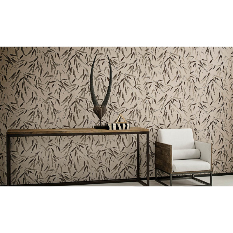 Dit behang onderscheidt zich door de subtiele toepassing van flock op een selectie van blaadjes. Deze techniek voegt een tastbare textuur en diepte toe, waardoor het patroon tot leven komt en een luxueuze, exclusieve uitstraling krijgt die het oog blijft boeien.