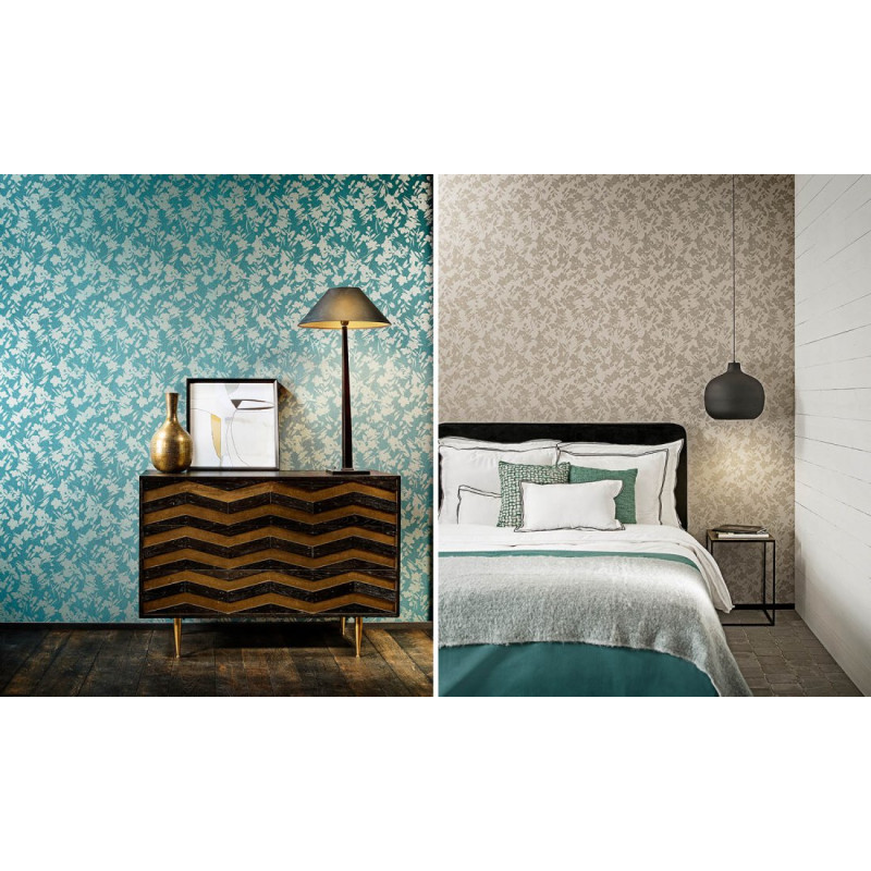 Dit behang onderscheidt zich door de subtiele toevoeging van flock op een selectie van de blaadjes. Deze techniek geeft het ontwerp meer diepte, textuur en een onmiskenbaar luxueus karakter. Het resultaat is een wanddecoratie die zowel visueel als tactiel bijzonder is.