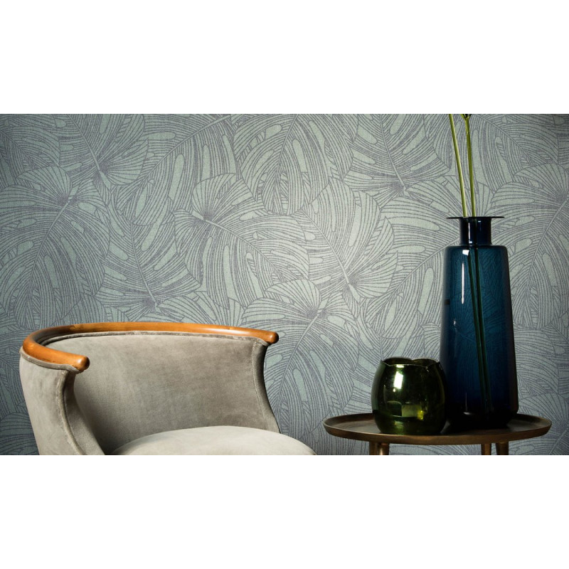 Dit prachtige behang onderscheidt zich door een subtiele toepassing van flock op een selectie van de bladeren. Deze techniek voegt een tastbare textuur en diepte toe aan het ontwerp, wat resulteert in een exclusieve en luxueuze uitstraling. Het creëert een fascinerend spel van licht en schaduw op uw muur.