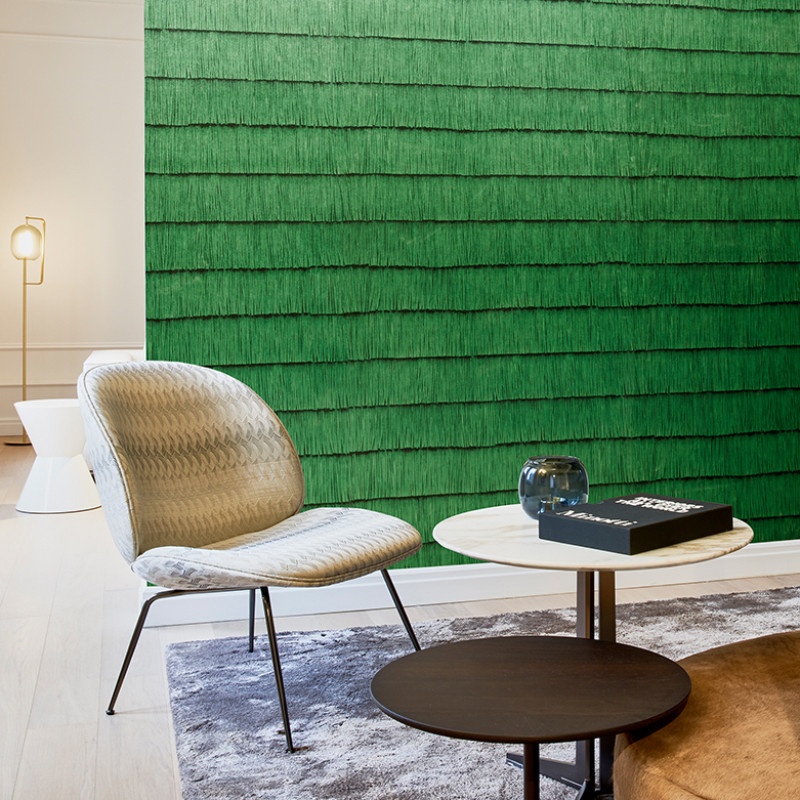 Dit veelzijdige behang is perfect voor het creëren van een statement muur in de woonkamer, slaapkamer of studeerkamer. Het past uitstekend bij meubels in mid-century modern stijl, maar kan ook een verrassend contrast vormen met meer minimalistische interieurs. De rijke textuur en het ingetogen patroon maken het geschikt voor zowel woonhuizen als professionele ruimtes zoals boutique hotels of stijlvolle kantoren.