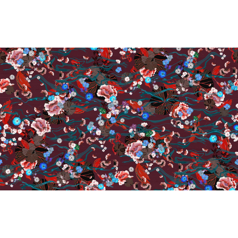 | Kwaliteit | Textielmuurbekleding op vlies Tafereel van een Japanse vijver in bovenaanzicht op textiel met zijdelook |