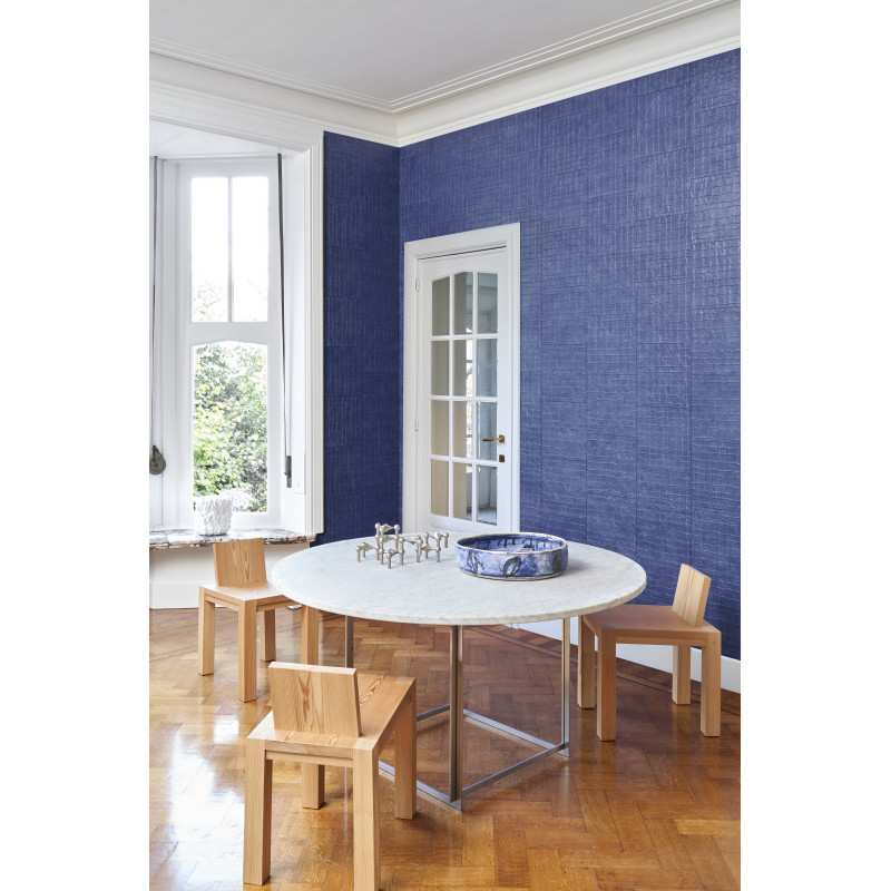 Het Ténéré-behang is een meesterwerk in textuur en diepte. De basiskleur is een serene grijze teal, een kalmerende tint die perfect past in zowel landelijke als moderne interieurs. Hieroverheen ligt een delicaat patroon dat doet denken aan geëtste leerstructuren en zachte, organische vormen, geïnspireerd op de natuur. Het is de ideale keuze voor wie op zoek is naar een accentmuur met karakter, zonder overweldigend te zijn.