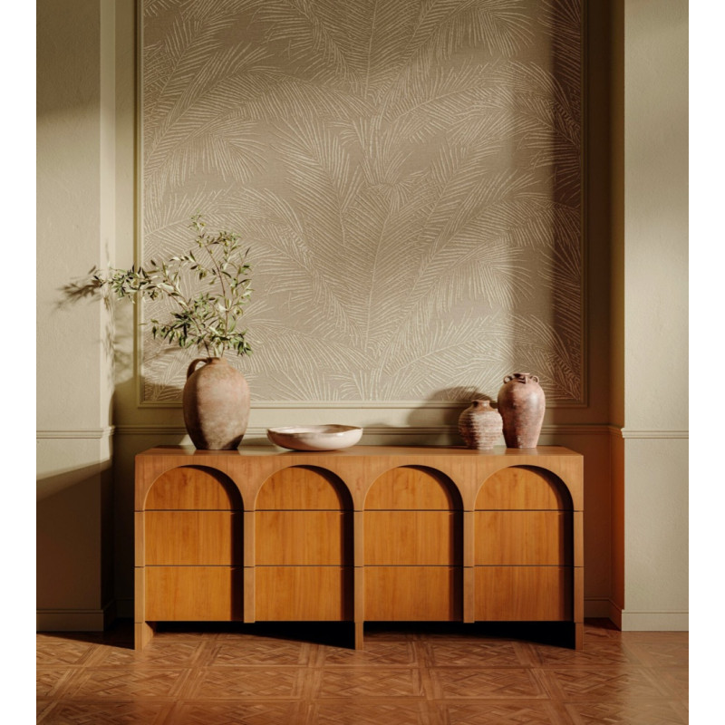Het Lanai behang valt in de categorie Modern behang en combineert een tijdloze uitstraling met een subtiele, tactiele textuur. Het ontwerp is geïnspireerd op de rust en natuurlijke schoonheid van de tropen, maar vertaald naar een veelzijdige, neutrale basis die in elk interieur past.