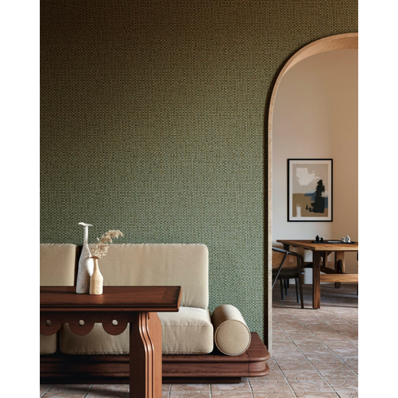 Het ontwerp in de frisse, rustgevende aqua tint roept beelden op van een uitgestrekt uitzicht vanaf een comfortabele rieten schommelstoel. De subtiele patronen en texturen in het behang refereren aan tropische flora, zachte briesjes en een zorgeloze vakantiegeest. Het is de perfecte manier om een kalmerende en stijlvolle accentmuur te creëren.