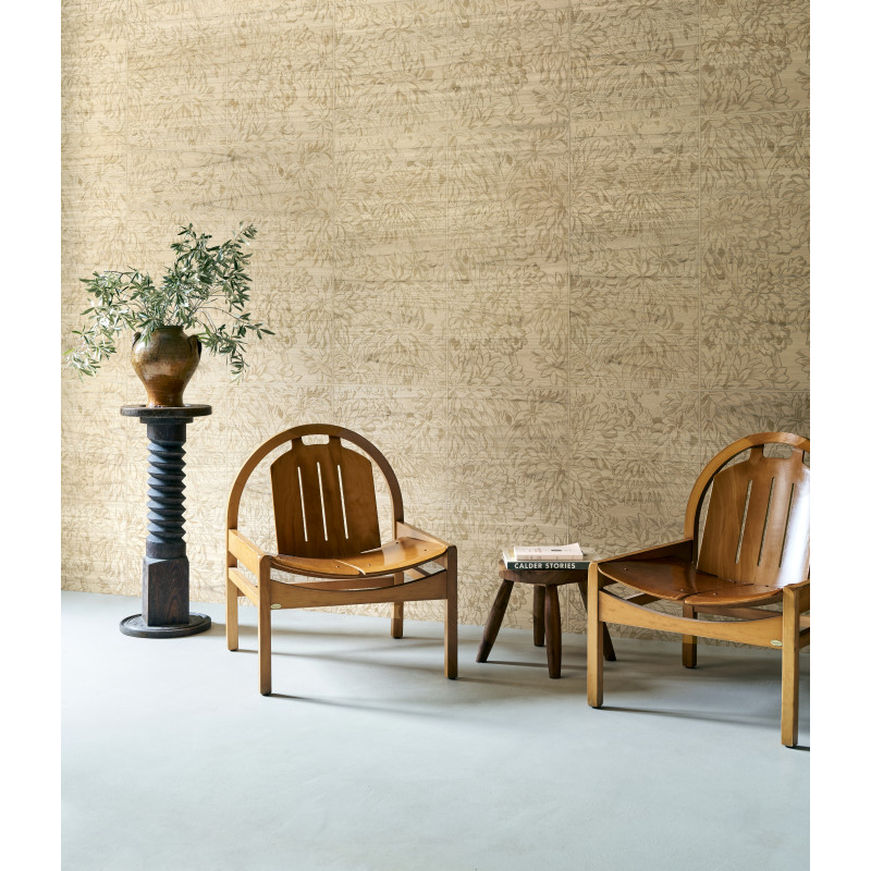 Breng de serene schoonheid en mysterieuze sfeer van een dicht, oeroud bos in uw interieur. Dit kunstzinnige behang uit de gerenommeerde Arte Les Forêts collectie combineert tijdloze vintage charme met een moderne, verfijnde uitstraling. Het ontwerp toont een elegant patroon van takken en bladeren, uitgevoerd in diepe, rijke ebbenhout tinten, dat diepte en textuur creëert.