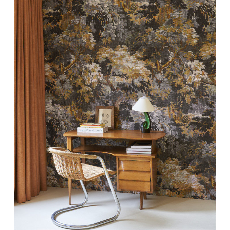 • Dioré Finishing: De luxe, metallic gouden accenten (Dioré) vangen het licht en geven het behang een rijke, textuurvolle uitstraling.