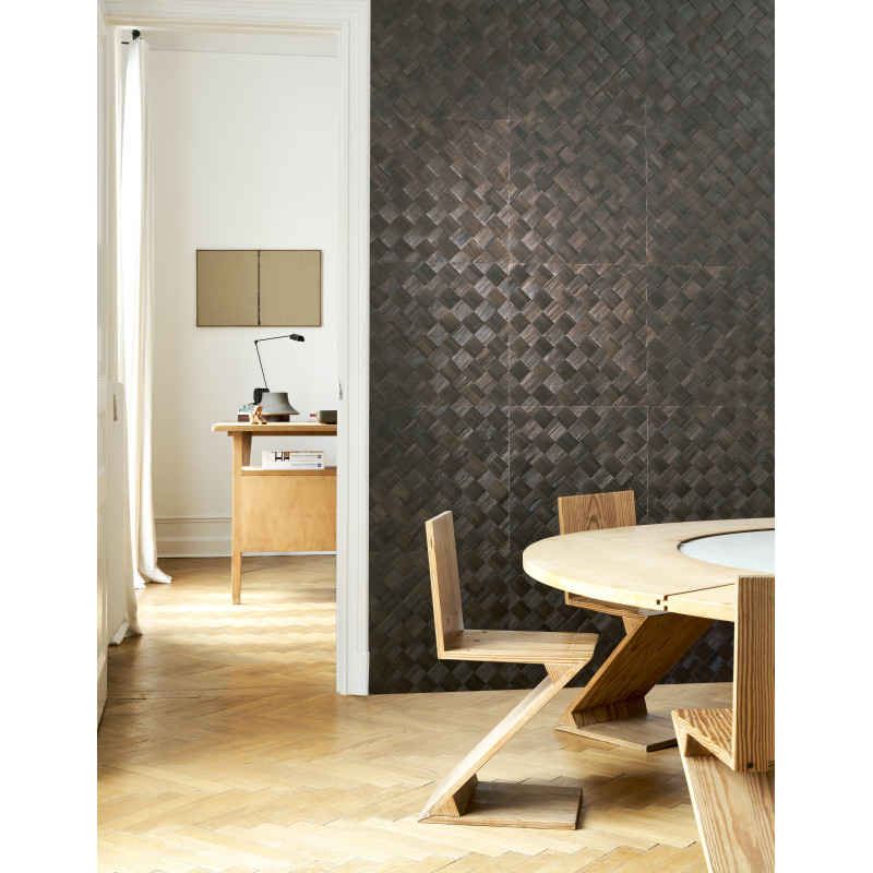 | Opmerking | Muurbekleding in tegelvorm vervaardigd van schors van de bananenboom, handmatig geweven in een dambordpatroon |