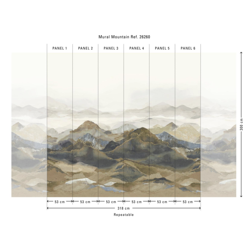 Dit behang wordt geleverd als een complete set van drie panelen. Samen vormen ze een naadloos panoramisch beeld van maar liefst 318 cm breed en 300 cm hoog. Hierdoor is het direct klaar voor montage en bedekt het een complete muur voor een maximaal effect.