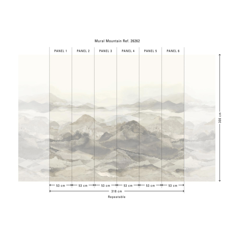 Dit behang wordt geleverd als een complete set van drie panelen. Samen vormen ze een panoramisch beeld van maar liefst 318 cm breed en 300 cm hoog, voor een maximale visuele impact zonder storende naden.