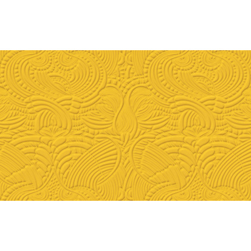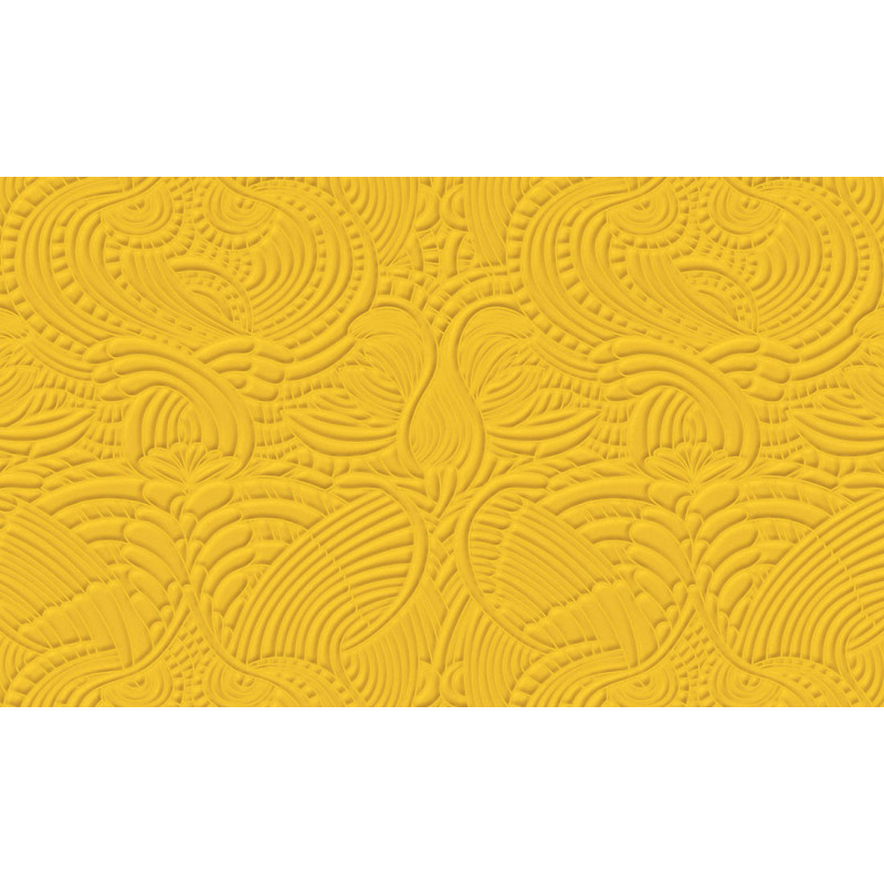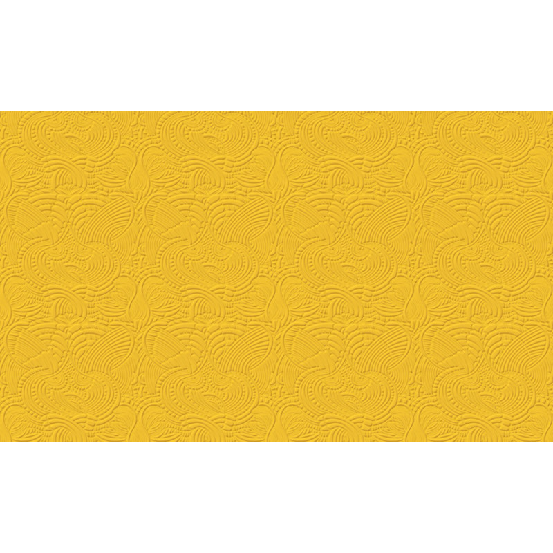 Het dessin toont een sierlijke samenstelling van pauwenveren en de iconische dodo-vogel, gestileerd weergegeven in een warme, mosterdgele 'Yolk'-kleur. Het patroon combineert krullende lijnen, organische vormen en een subtiel 3D-effect, wat zorgt voor diepte en beweging op de muur. Het valt binnen de categorieën modern en klassiek, waardoor het tijdloos en veelzijdig is.