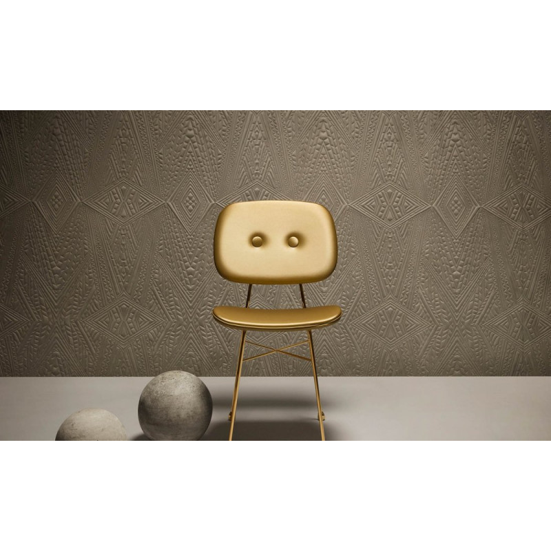 Dit behang combineert een historisch verhaal met een eigentijdse, grafische look. De zachte, aardse 'Sage' kleur voegt rust en diepte toe aan de ruimte, terwijl het 3D-effect en de geometrische structuren voor een moderne en dynamische uitstraling zorgen. Het is een perfecte mix van klassieke elegantie en hedendaagse kunst.