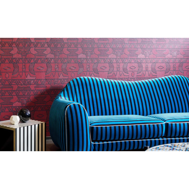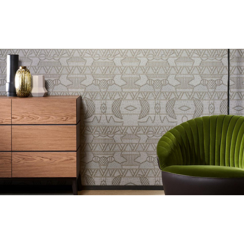 Breng de mystieke kracht van oude beschavingen in huis met het Paleo Empire 50552 behang. Dit stijlvolle stofbehang combineert een diepe, natuurgetrouwe kleurschakering met een krachtig Aztec- of tribale patroon van ruiten en blokken. Het resultaat is een wandafwerking die zowel tijdloos als onmiskenbaar modern is, perfect voor wie houdt van karakter en textuur.