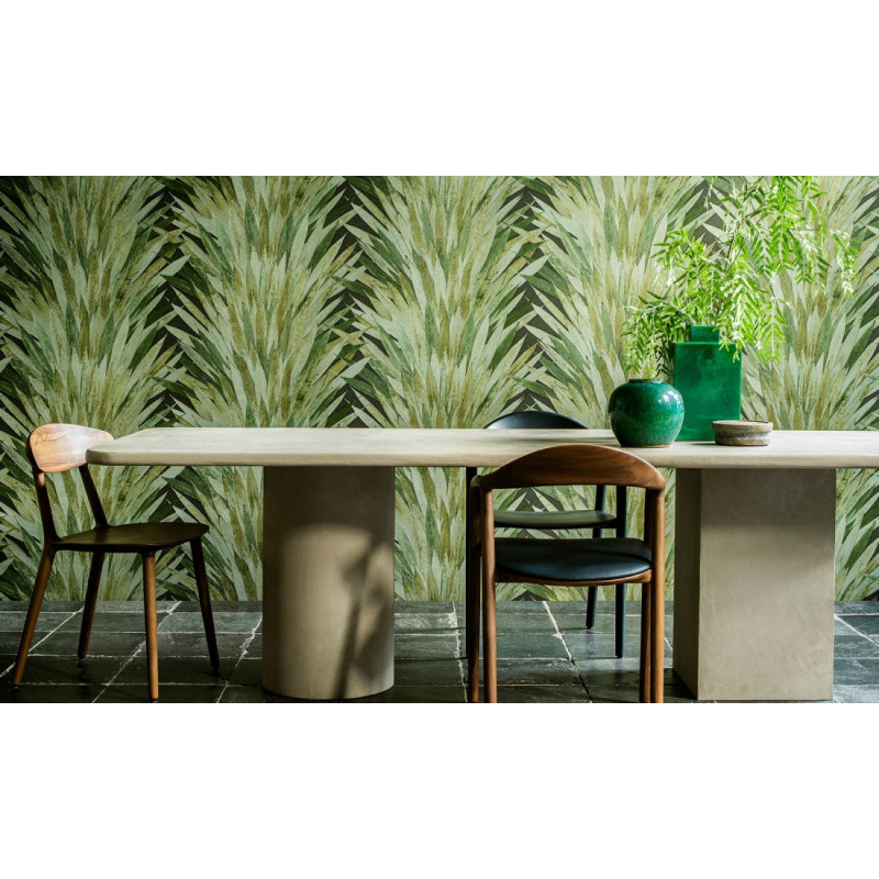 Het Selva Abanico behang valt op door zijn verfijnde patroon van gestileerde bladeren in een elegante waaiervorm. Het ontwerp biedt diepte en textuur, perfect voor wie houdt van een subtiele maar impactvolle muurafwerking.