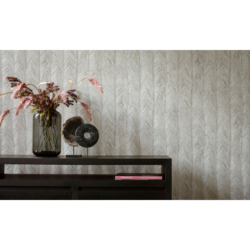 Dit behang biedt meer dan alleen decoratie. Het brengt balans en harmonie in uw ruimte. De verticale lijnen werken ruimtelijk en de aardse, botanische elementen zorgen voor een kalmerende atmosfeer. Het is een veelzijdige keuze die eenvoud combineert met artistieke expressie.