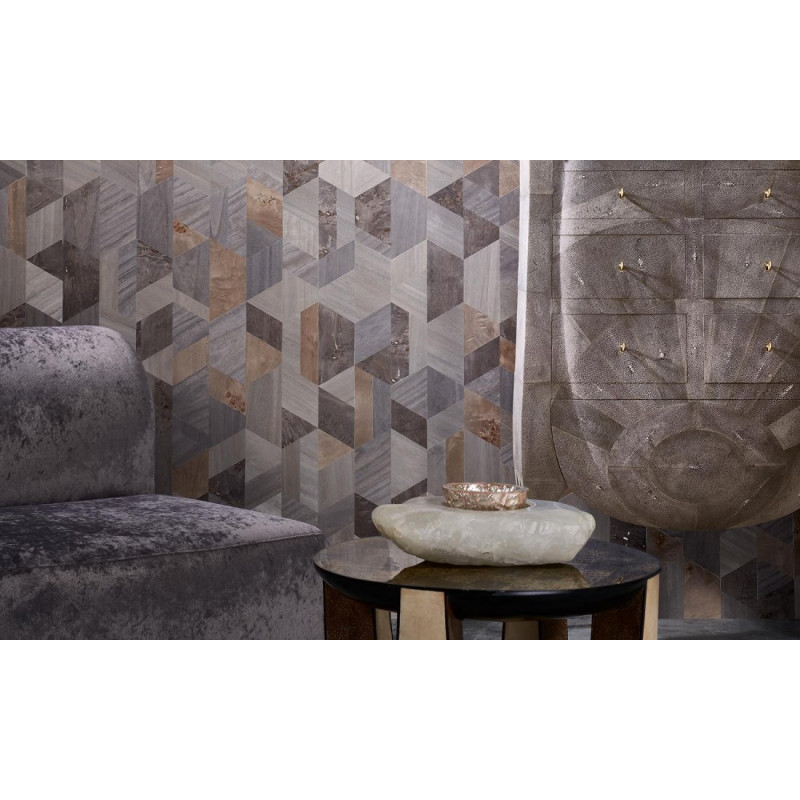 Het ontwerp is geïnspireerd op hout van de Paulownia-boom, bekend om zijn lichte gewicht en fijne nerfstructuur. Het resultaat is een muurbekleding die opvallend natuurgetrouw is, met zichtbare nerven en de karakteristieke sporen van knoesten. Deze details creëren een diepte en textuur die alleen echt materiaal kan bieden, in een praktische en makkelijk aan te brengen behangvorm.