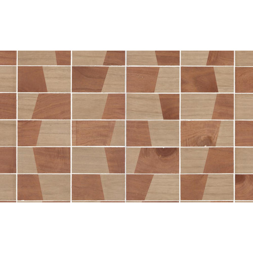 Het Timber Trapeze 38211 behang is geïnspireerd op industriële en Scandinavische designstromingen, waar eenvoud en eerlijke materialen centraal staan. Het patroon van ruiten en blokken imiteert de look van echte houten rabatdelen of planken, wat zorgt voor diepte en karakter op de muur.