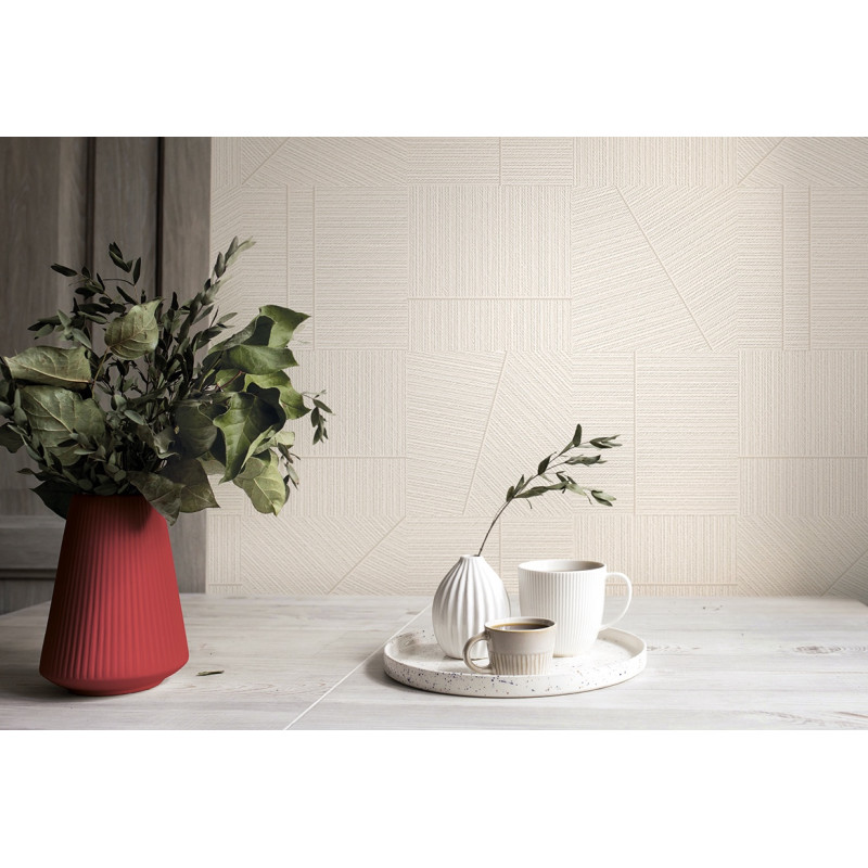 • Uniek 3D Geweven Effect: Het ontwerp imiteert de textuur van fijn weefwerk, wat diepte en een luxueuze tactiele sensatie aan je muur geeft.
