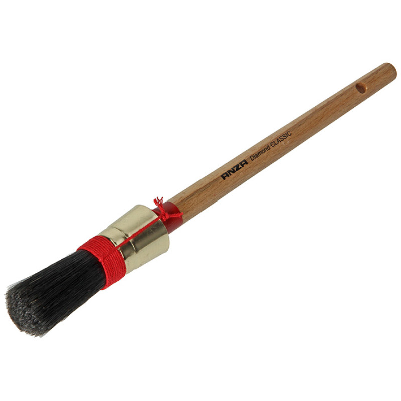Is vervaardigd met een uitgekiende mix van zwart varkensharen synthetische vezels, met touwwoeling en geverniste beukensteel. De kop is vol-gekit met 2-componentenmateriaal om insijpelen uit te sluiten. De kwast is zeer functioneel en van hoogwaardige kwaliteit. Geschikt voor lakken op alkydbasis en alle producten op terpetinebasis.