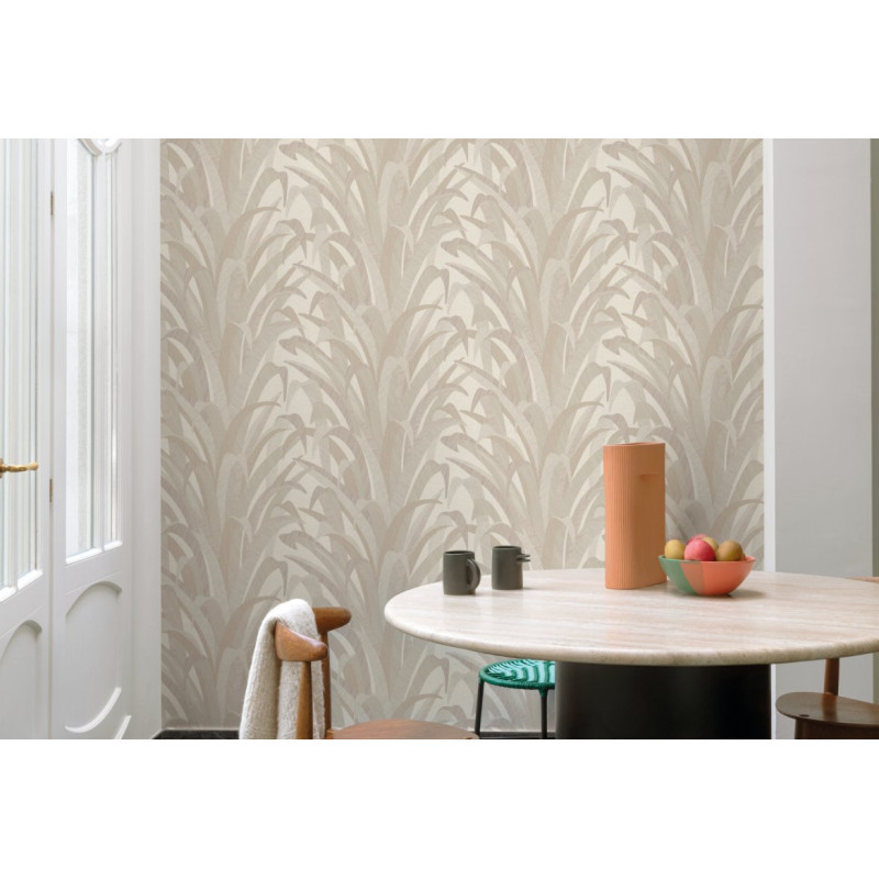 Het Barklay Print 1 35133 behang valt op door zijn verfijnde patroon van gestileerde bladeren en takken. Het ontwerp biedt een perfecte balans tussen rustgevende natuur en strakke, hedendaagse vormgeving.