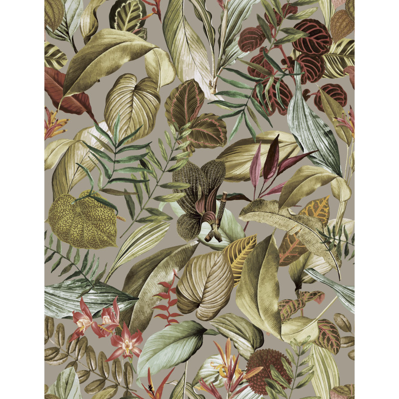 Dit behang toont een weelderige compositie van: