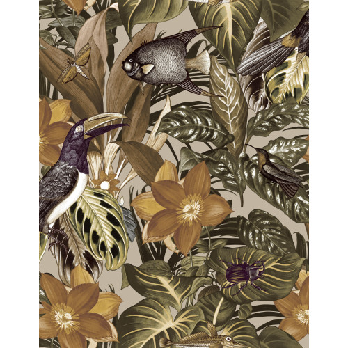 Dit muurpapier is een eerbetoon aan de rijke biodiversiteit van de Caribische zee en eilanden. Het ontwerp is een harmonieuze mix van: