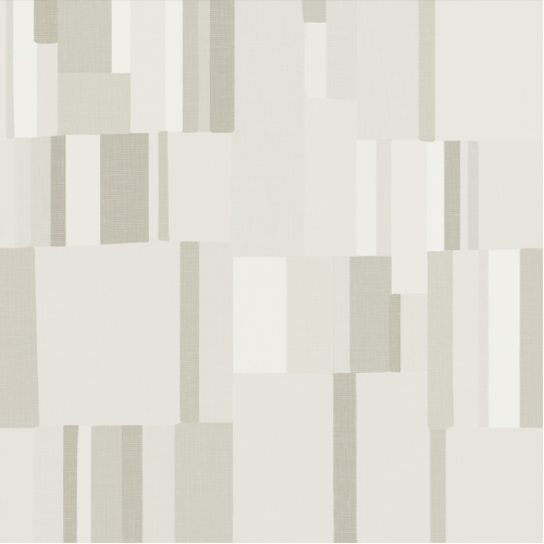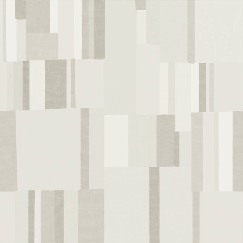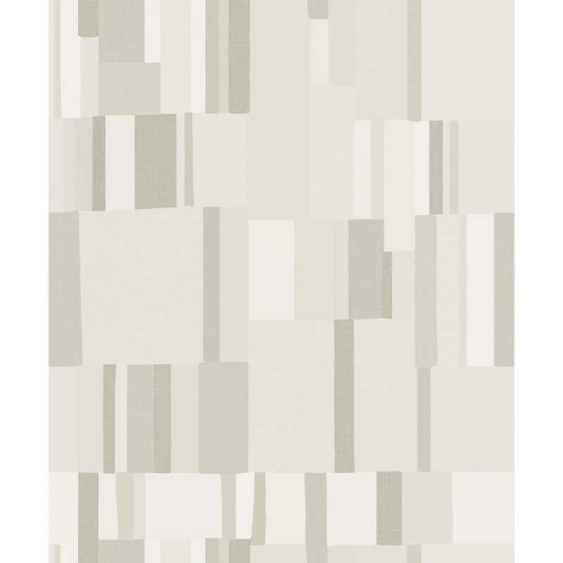 Het ontwerp toont een harmonieuze combinatie van verticale strepen en zachte, geschilderde vierkanten. Dit creëert een visueel intrigerend effect dat zowel rustig als dynamisch aanvoelt. Het patroon is ontworpen om naadloos aan elkaar te passen voor een perfecte, vloeiende uitstraling op de muur.