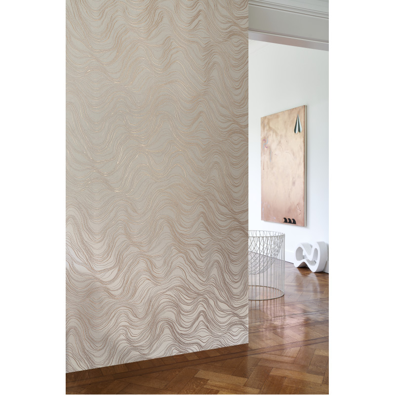 Breng de warme gloed van een zonsopgang en de dynamische energie van moderne kunst in huis met het Kharga Bayuda 74041 behang in de prachtige 'Sunrise Copper' kleur. Dit behang meesterlijk abstracte vormen, vloeiende krullen en geometrische golven tot een adembenemend visueel spektakel. Het is het perfecte statement voor wie houdt van een retro-futuristische stijl met een artistieke twist.