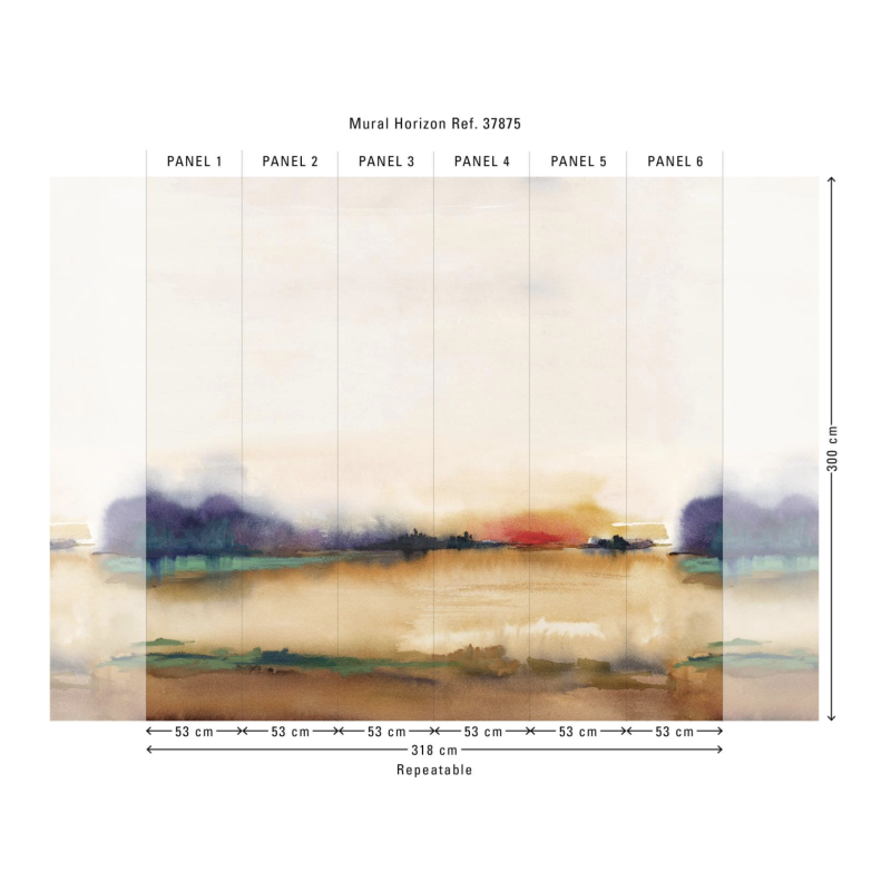 Afmetingen rol Panorama van 318 cm (6 x 53 cm) x 300 cm = 9, 54 m²