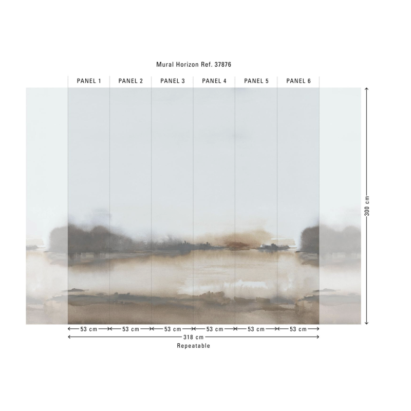 Afmetingen rol Panorama van 318 cm (6 x 53 cm) x 300 cm = 9, 54 m²