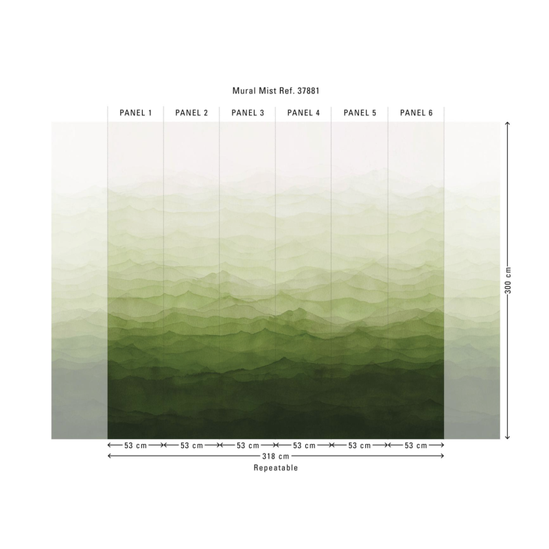 | Afmetingen rol | Panorama van 318 cm (6 x 53 cm) x 300 cm = 9, 54 m² |