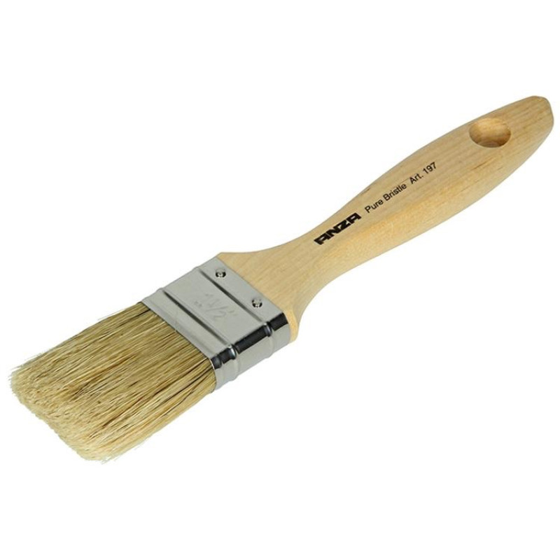 ANZA platte verfkwast / verfborstel dubbeldik met wit haar en geverniste houten steel. Geschikt voor watergedragen verven.