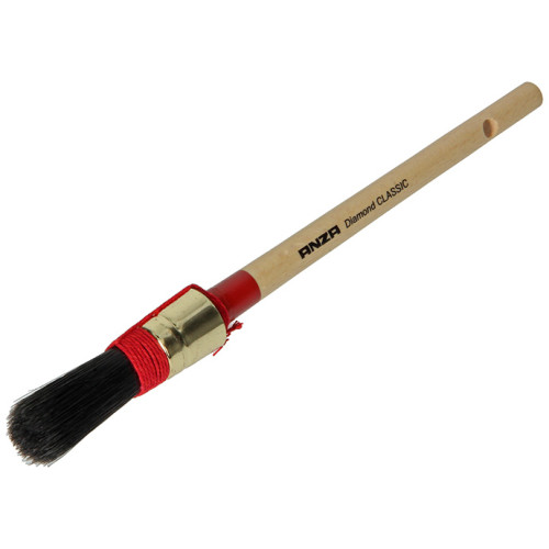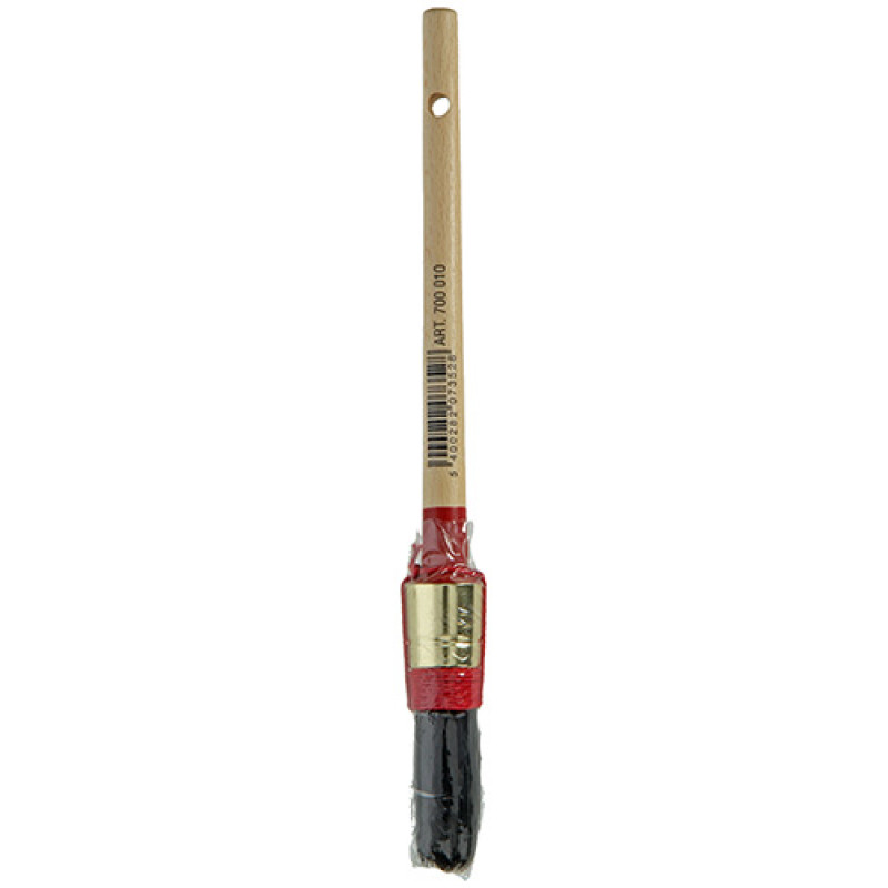 Is vervaardigd met een uitgekiende mix van zwart varkensharen synthetische vezels, met touwwoeling en geverniste beukensteel. De kop is vol-gekit met 2-componentenmateriaal om insijpelen uit te sluiten. De kwast is zeer functioneel en van hoogwaardige kwaliteit. Geschikt voor lakken op alkydbasis en alle producten op terpetinebasis.