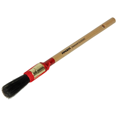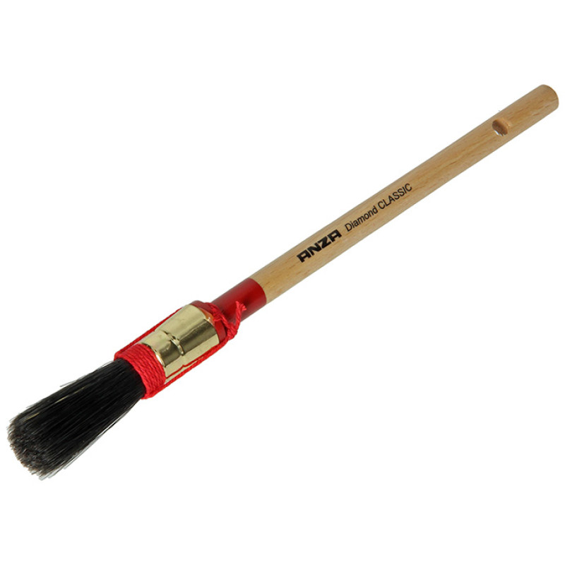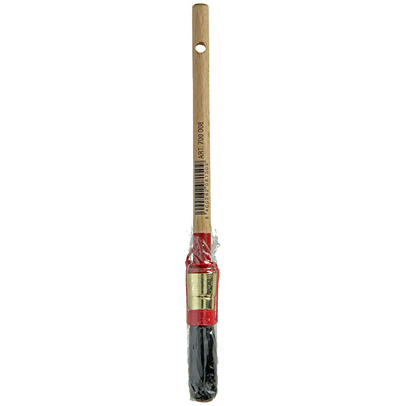 Is vervaardigd met een uitgekiende mix van zwart varkensharen synthetische vezels, met touwwoeling en geverniste beukensteel. De kop is vol-gekit met 2-componentenmateriaal om insijpelen uit te sluiten. De kwast is zeer functioneel en van hoogwaardige kwaliteit. Geschikt voor lakken op alkydbasis en alle producten op terpetinebasis.