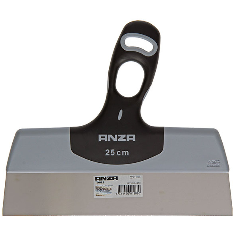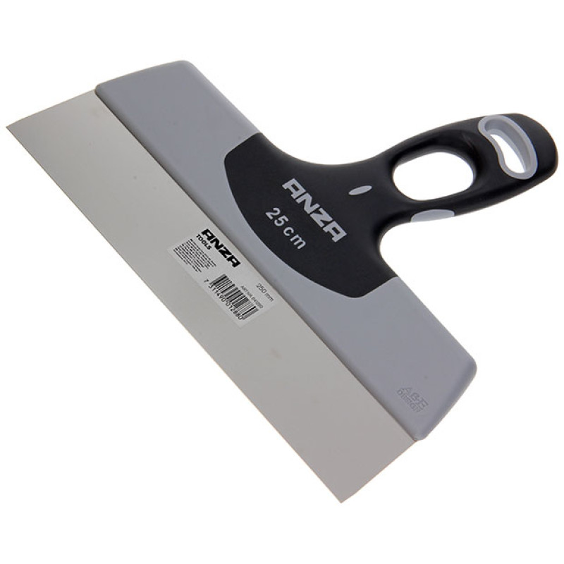 Is ideaal voor het glad bezetten van muren en plafonds. Het mes is vervaardigd uit roestvrij veerstaal. Het softgrip handvat is voorzien van een gepatenteerd duimgat om gebalanceerd en met minder spanning te kunnen werken, uitermate ergonomisch.