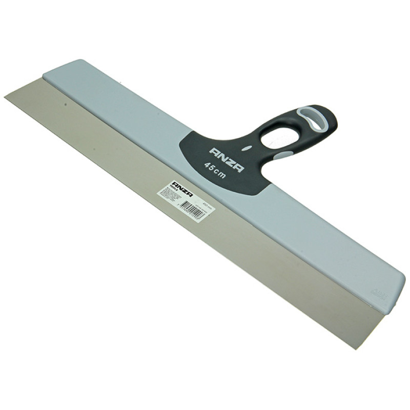 Is ideaal voor het glad bezetten van muren en plafonds. Het mes is vervaardigd uit roestvrij veerstaal. Het softgrip handvat is voorzien van een gepatenteerd duimgat om gebalanceerd en met minder spanning te kunnen werken, uitermate ergonomisch.