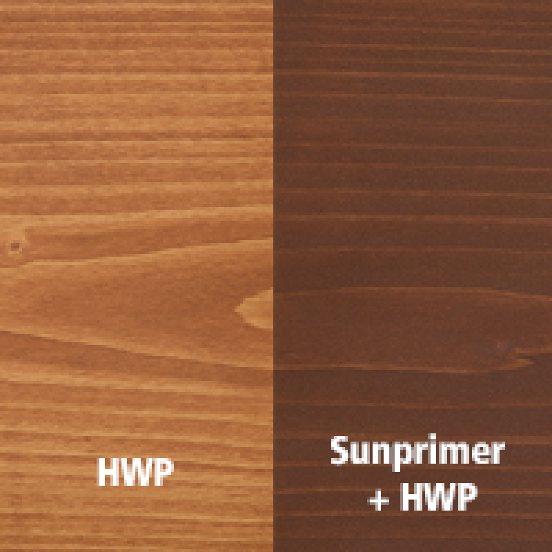 RMC Sunprimer HWP - die steeds wordt aangebracht in dezelfde kleur als de RMC Hybrid Wood Protector - garandeert een diepe penetratie van de kleurpigmenten en creëert op die manier een nog intensere kleur.