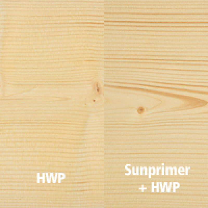 RMC Sunprimer HWP - die steeds wordt aangebracht in dezelfde kleur als de RMC Hybrid Wood Protector - garandeert een diepe penetratie van de kleurpigmenten en creëert op die manier een nog intensere kleur.