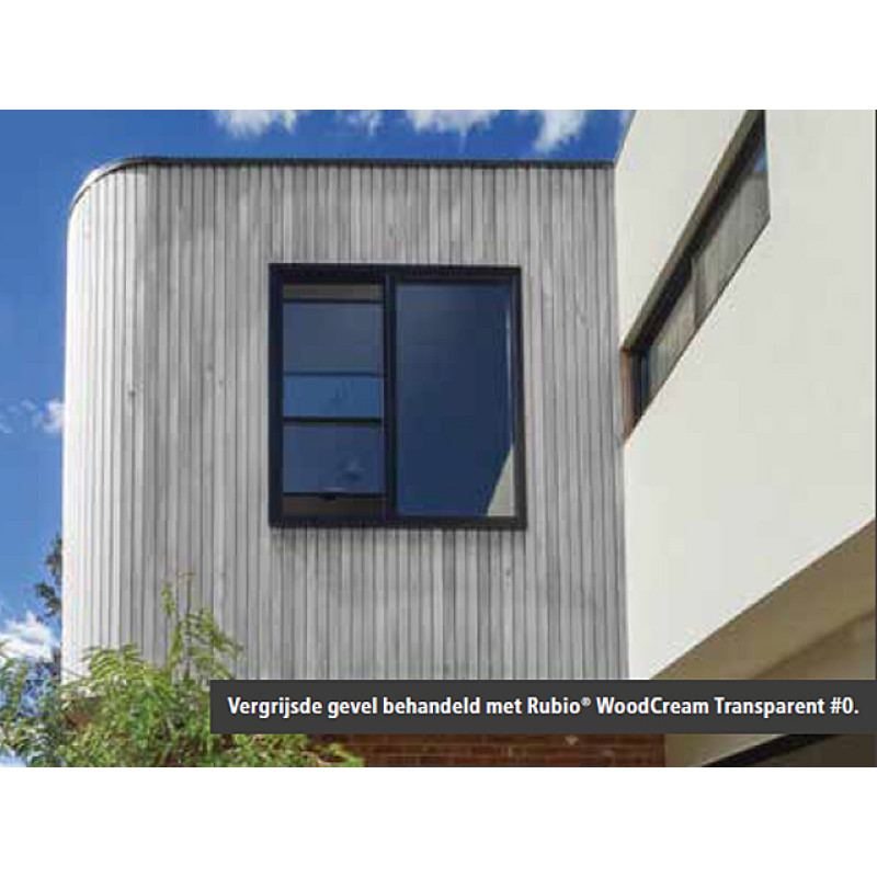 Rubio WoodCream geeft houten oppervlakken een semi-transparante, vergrijsde of dekkende look en is verkrijgbaar in 3 kleurencollecties: The Grey Collection, The Traditional Collection en The Scandinavian Collection. Er is ook een transparante versie (#0) beschikbaar. Hoewel deze versie geen UV-filter bevat, laat het hout op natuurlijke wijze vergrijzen, en wordt het beschermd en waterafstotend gemaakt. Deze transparante versie zal reeds vergrijsd hout eveneens beschermen.