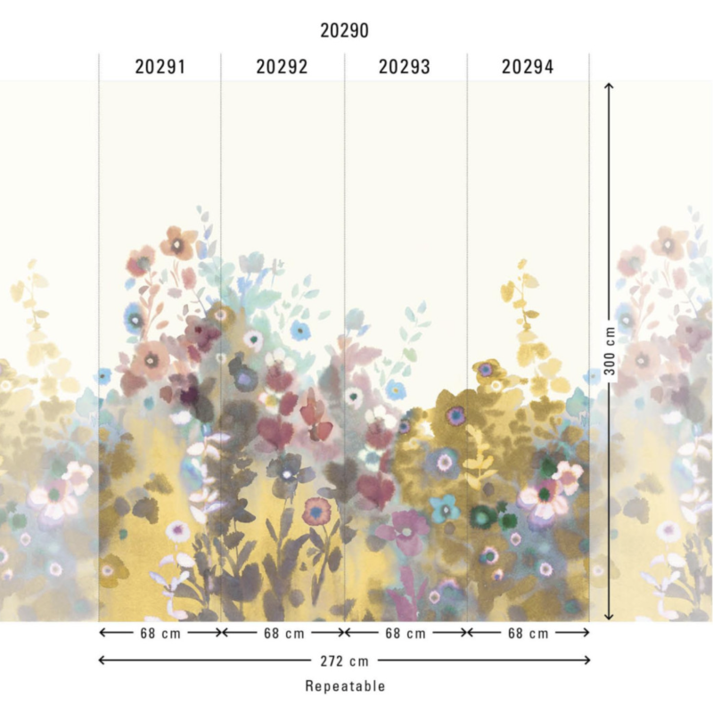Promenade Meadow Panels 20291: Een Botanische Wandeling in Aquarel